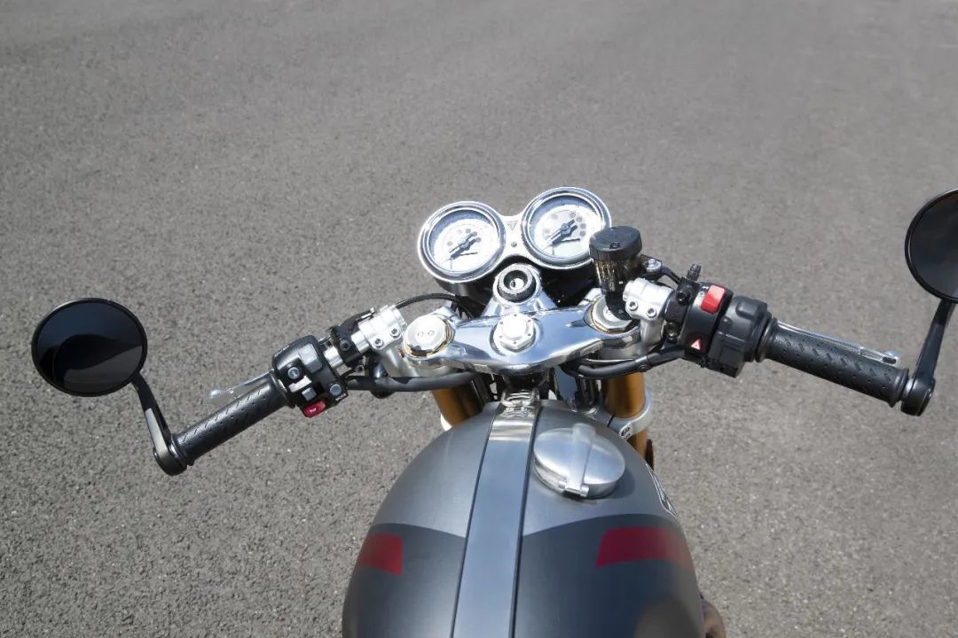 Thruxton 1200 RS主打复古英伦风,但内部武装着纯正的现代科技,为骑手提供3种驾驶模式,其中公路模式属于标准驾驶,雨天模式减少动力输出、提高弱抓地力路面的行驶安全,运动模式属全动力输出、油门响应爽快迅捷。而且,现在Thruxton 1200 RS的驾驶模式直接关联电子油门、牵引力控制系统和防抱死制动系统,能够更精准地匹配路况和顺应骑手意图。
