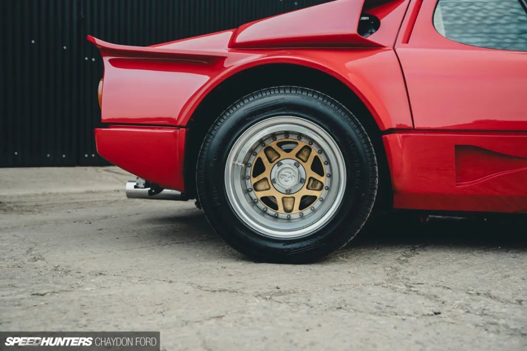 外观方面,最大的变化就是脚下的轮圈了,512 BB出厂时搭载的是相对小巧的15英寸轮圈,这个轮圈大小还是很符合512 BB的外观特点的,不过Koenig Specials认为有必要为它升级一下轮圈宽度,于是前轮升级到9英寸宽,后轮则达到了11英寸宽,外观线条更有力量了,配备的轮胎规格则分别是225/50和325/35。