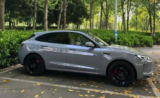 来看侧面,新问界M5前轮上方翼子板处的摄像头组件、车窗周围的镀铬饰条等,都进行了熏黑处理。另外,新车轮毂还改为黑色双五辐样式,结合红色卡钳,看起来很动感。此外,该车车顶还搭载了激光雷达。