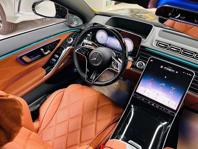 奔驰S580内饰设计,对于许多消费者来说应该是不太陌生了,采用了最新的数字豪华座舱。中控台是T型布局,配备了一块12.8英寸中控屏,以及12.3英寸的悬浮式仪表盘。用料部分可以说是极尽奢华,方向盘是木质外圈、真皮内圈,配备主动式多仿型座椅,采用手工缝线工艺,具有加热、通风、按摩等功能。在匹配上全景天幕、柏林之声4D音响系统、64色氛围灯、香氛装置,有着高端豪华的驾乘体验。