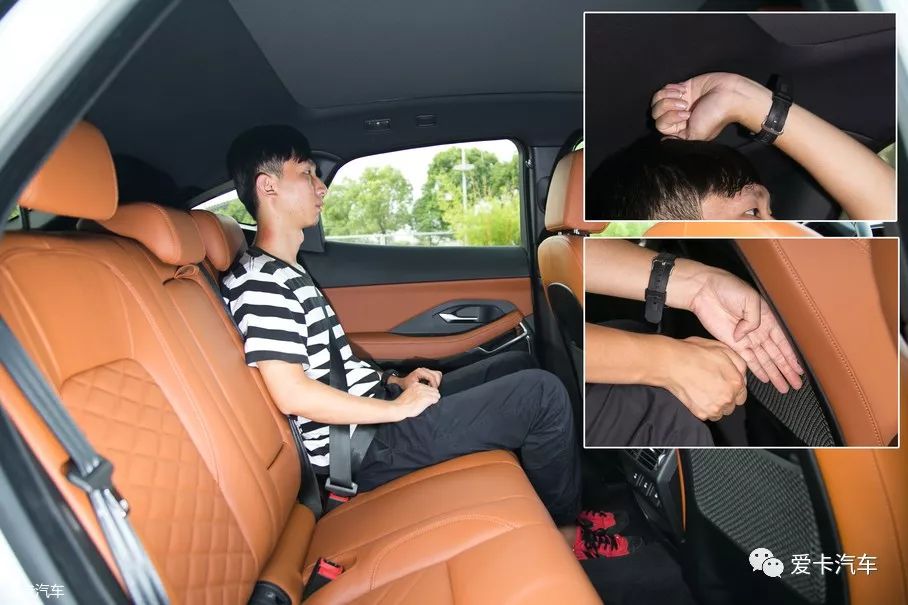 前排位置保持不变,体验者坐在后排座椅,头部还剩余一拳的空间,腿部还剩余一拳四指的空间。