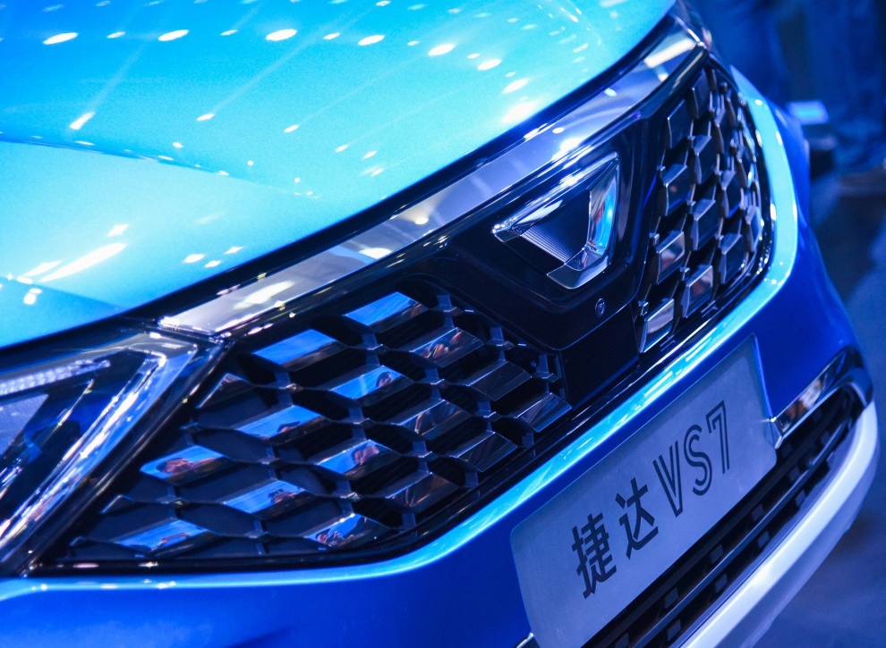 VS7作为大众旗下品牌捷达的新车在外观部分于大众的家族化设计保持了非常高的相似度。前脸点阵式格栅,鳞片造型设计与VS5的相似度比较高,很有辨识度。下包围采取用的是银色镀铬条,引擎盖加入较为犀利的线条。车身侧面腰线从前大灯组延伸至尾灯。尾部设计上,尾灯点亮后会有Y形的造型,下方还搭配银色镀铬饰条,排气为隐藏式布局。