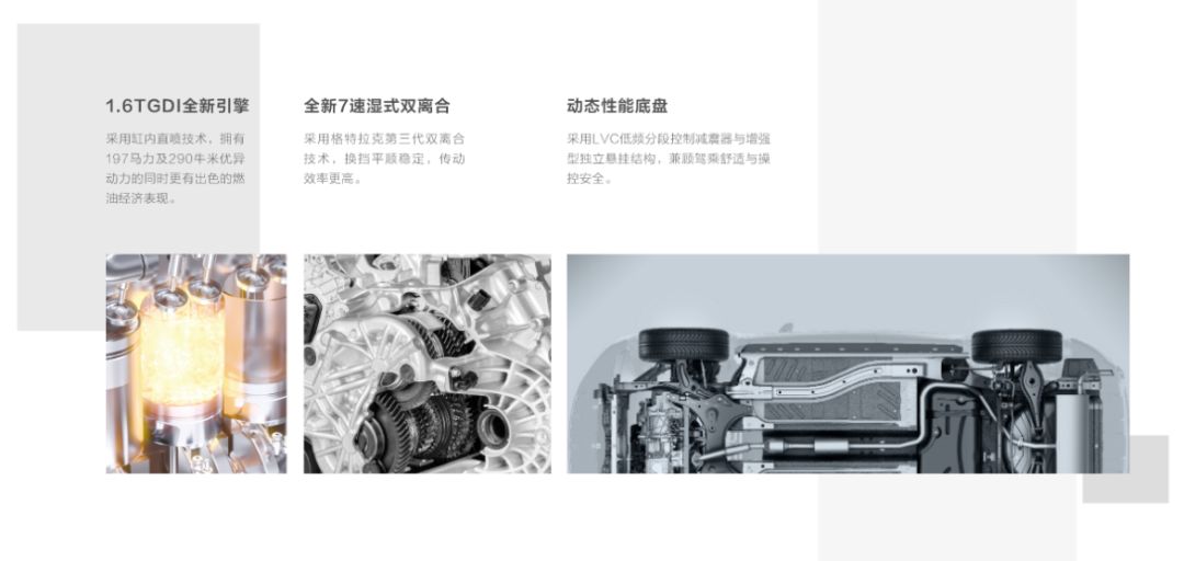 新车换装1.6T直喷发动机,最大197马力、290牛米,支持国六标准,匹配格特拉克7速湿式双离合变速箱。发动机变速箱同时换新,可谓诚意十足。外观倒是变化不大,新款观致5S全系标配LED大灯和尾灯、无匙进入、倒车雷达和影像。低配车型采用17吋轮圈,高配则为18吋。
