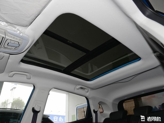 该车配备可开启全景天窗,采光不错,有效提升了车内的通透感。