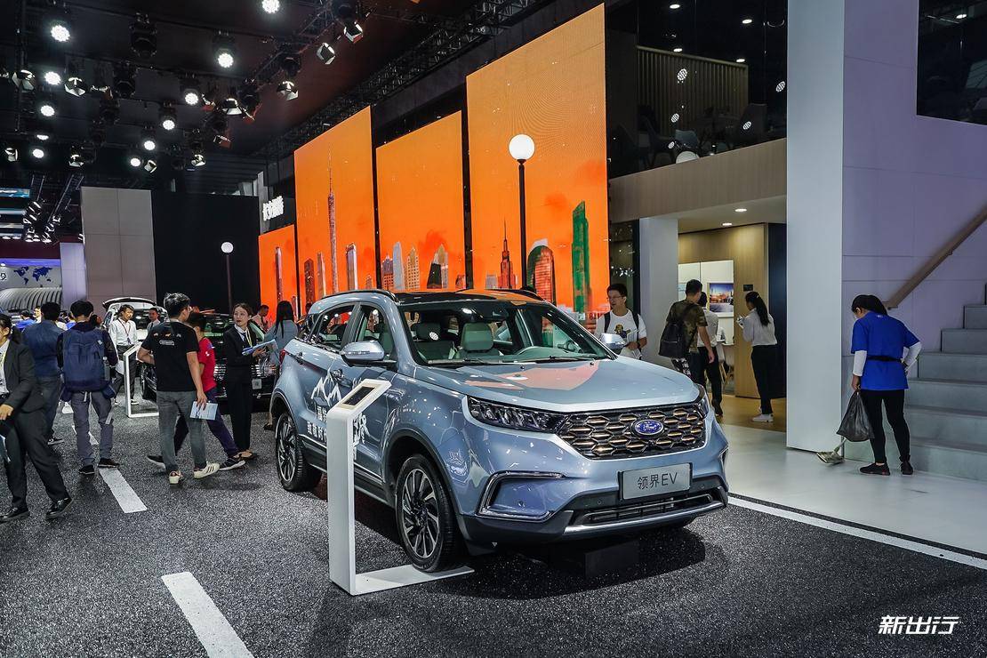 福特展台这次也带来了首款纯电动车领界 EV,销售人员告诉我们领界 EV 在车展期间可以优惠 1 万元,同时她们店(广州华驰)还额外提供 3 年免费基础保养的优惠政策(其它店不一定有),更多的优惠政策需要详细去谈。