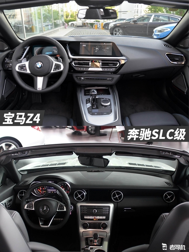 宝马Z4和奔驰SLC级分别配备了一块10.25英寸触控液晶屏和7英寸的普通液晶屏。两车均配备了GPS导航系统、导航路况信息显示、道路救援呼叫、蓝牙/车载电话、CarPlay。宝马Z4多了语音识别控制系统、车联网,奔驰SLC级多了CarLife。
