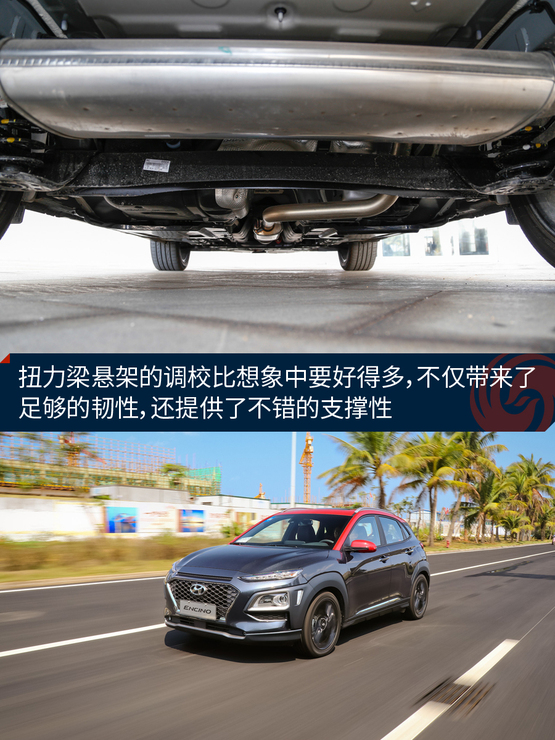 底盘的调校比想象中好,个人一直不太看好非独立悬架的结构,毕竟结构所限,很多形态下不能将车辆完全稳定在路面上。不过在城市道路中,谁又能天天高速紧急避让,高速过调头弯呢?在正常情况下,ENCINO的悬架还是挺给面子的,过坎回弹有力,过弯侧倾有佳。如果不趴在地上看底盘,甚至都察觉不到后悬架是扭力梁的结构。