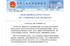 中国对原产于美国500亿美元进口商品加征关税