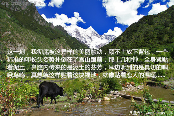 那一刻,我彻彻底底地被这异样的美丽触动,顾不上放下背包,一个标准的叩长头姿势扑倒在了雪山前的花草泥土之上,那几秒钟,全身紧贴着泥土,鼻腔内传来的是大地的芬芳,耳边听到的是真切的啁啾鸟鸣,真想就这样贴着这块福地就像贴着恋人的温暖。